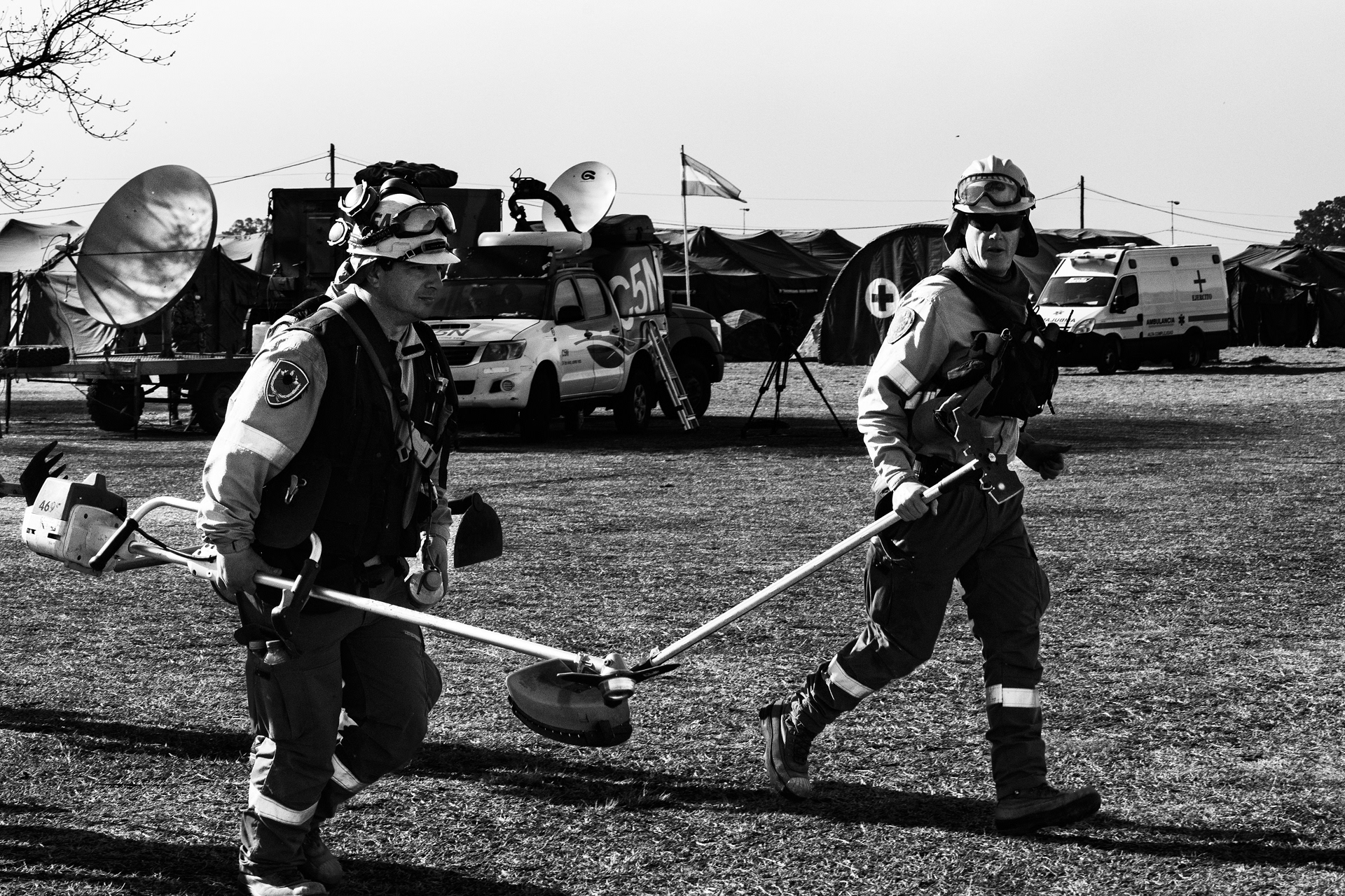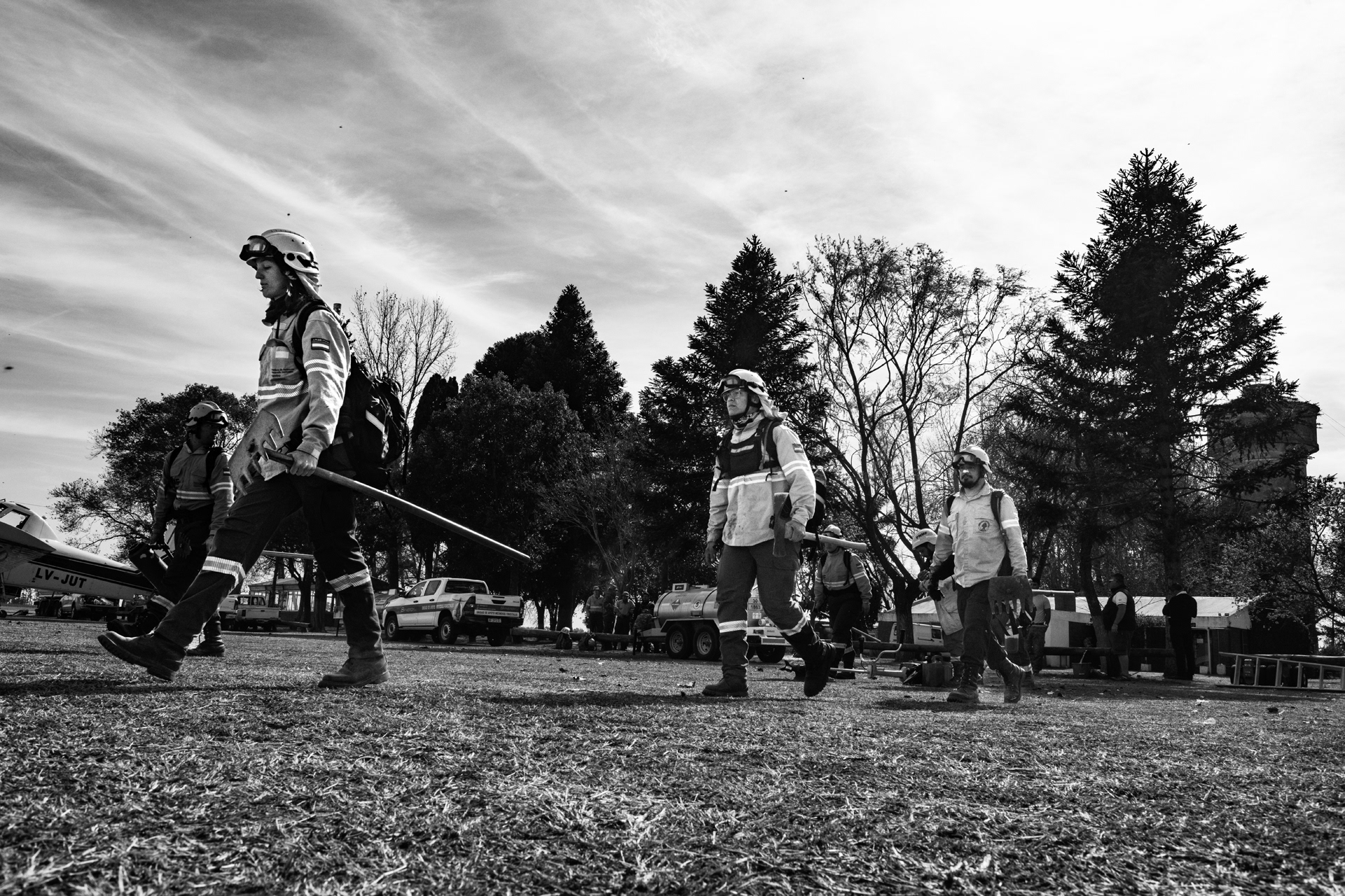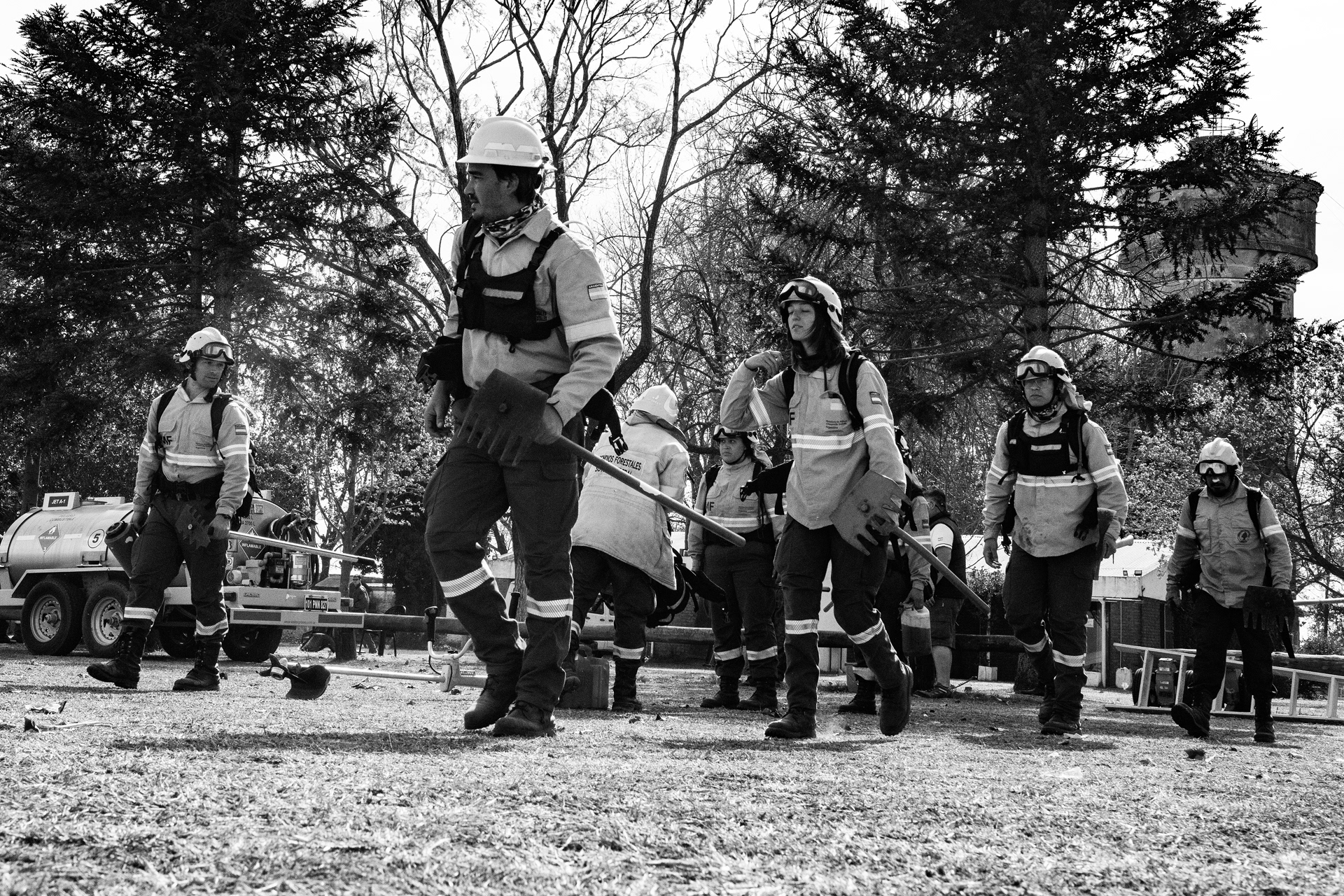 BRIGADISTAS FORESTALES COMBATEN EL FUEGO EN EL DELTA